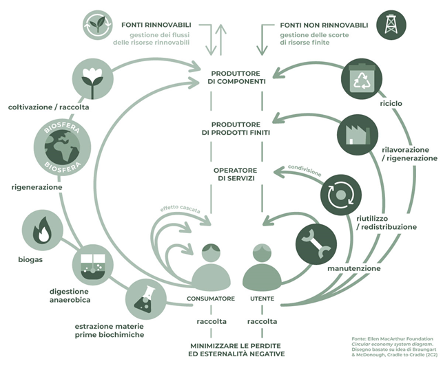 “L’economia circolare non è la gestione dei rifiuti, m l’ambiziosa ricerca di meccanismi socio-economici-industriali che rigenerano gli ecosistemi naturali e promuovono il benessere, la saluta e la felicità di tutti gli essere viventi” (dal libro modelli di Business Circlari).